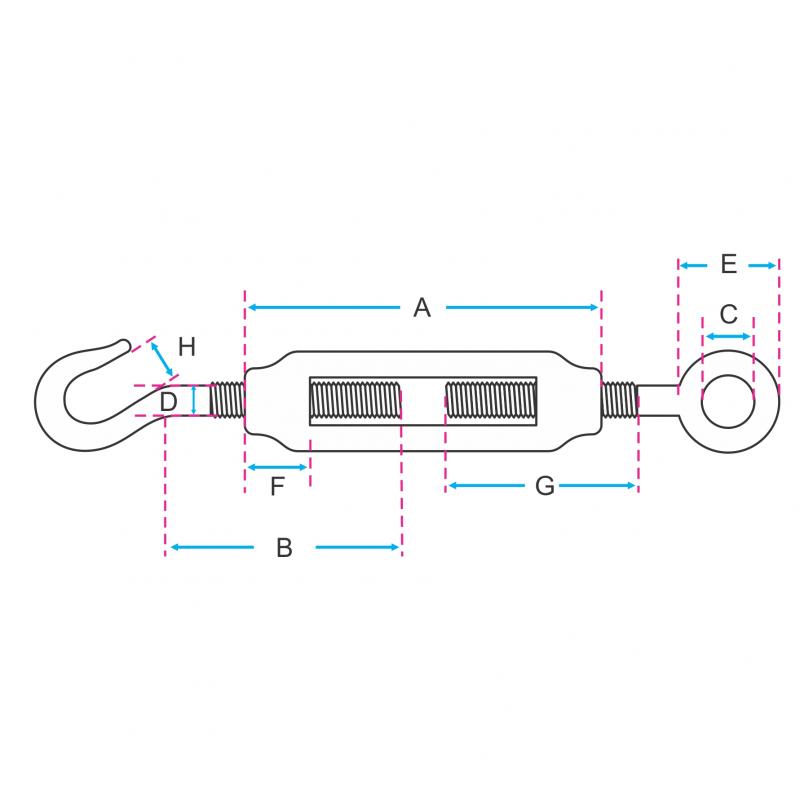 O Esticador DIN 1480 Gancho x Olhal é um acessório utilizado para esticar cabos de aço ou cordoalhas, e retirar as folgas em trabalhos com estaios.