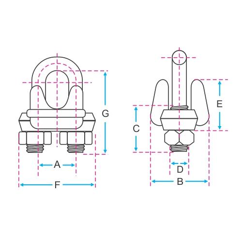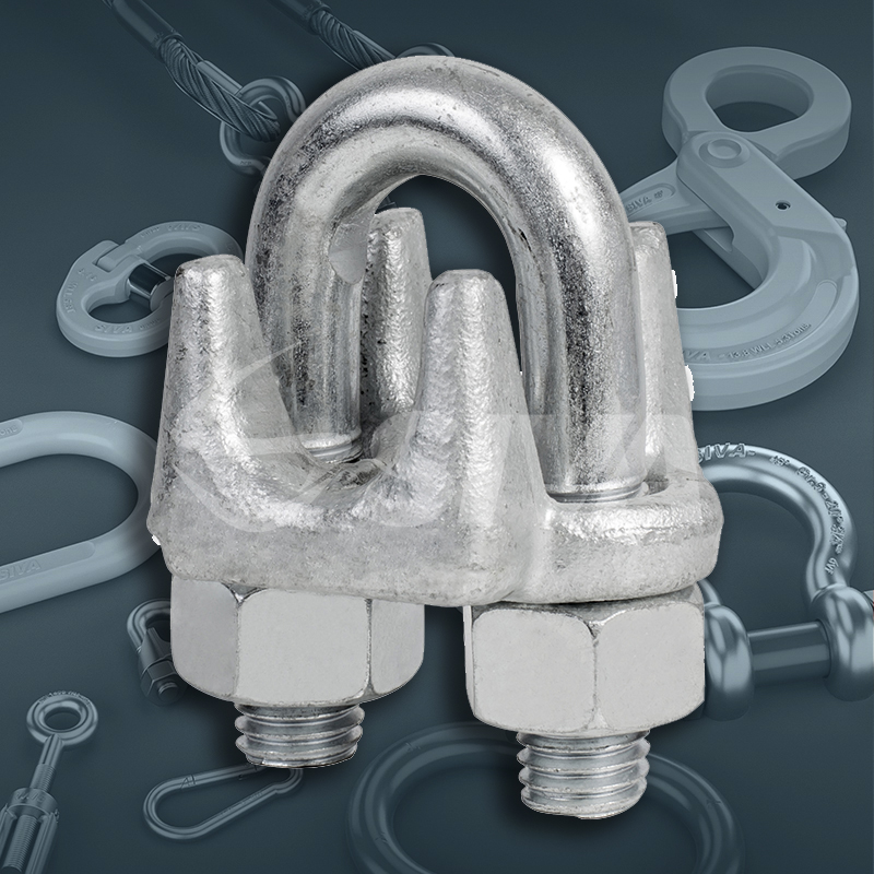 Grampo Pesado Forjado (Clips) para cabos de aço é amplamente utilizado na confecção manual de extremidades dos cabos de aço ou nas operações de amarração de cargas que exigem alto nível de resistência à tração e em condições severas de uso.