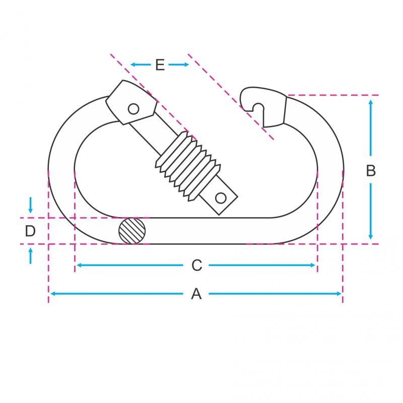 Mosquetão Oval com Trava Roscada é forjado em aço Carbono e possui acabamento galvanizado. Conforme norma NBR 15837.